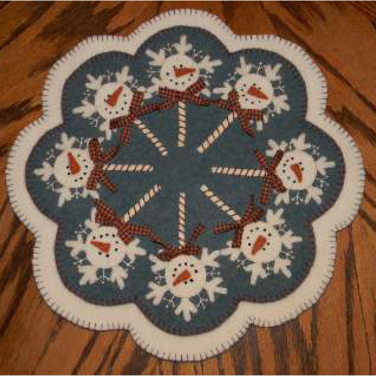 Simply the sweetest candle mat pattern ever! This delightful little confection is a breeze to stitch up using wool or wool felt. The completed candle mat measures approximately 13 inches. An adorable centerpiece for your winter table.