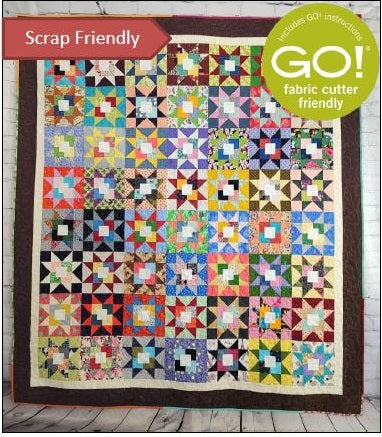 Scrap friendly quilt pattern, Accuquilt GO! or Rotary cutting directions and template included. Great in between project while working on larger projects.  This is a fun pattern that can be worked with 4 different scrap patterns per block, making it very colorful and happy.