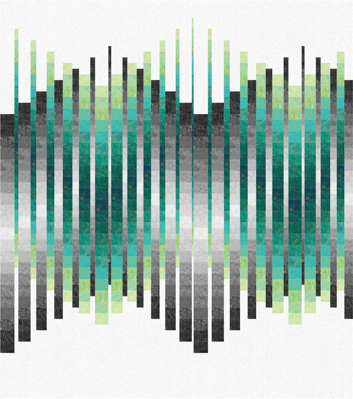 Choose 2 coordinating colors, selecting a range of 11 light-to-dark values in each, to make a stunning lap and throw or queen size quilt pattern. Fabric line shown is Artisan Spirit Shimmer Echoes by Deborah Edwards for Northcott.