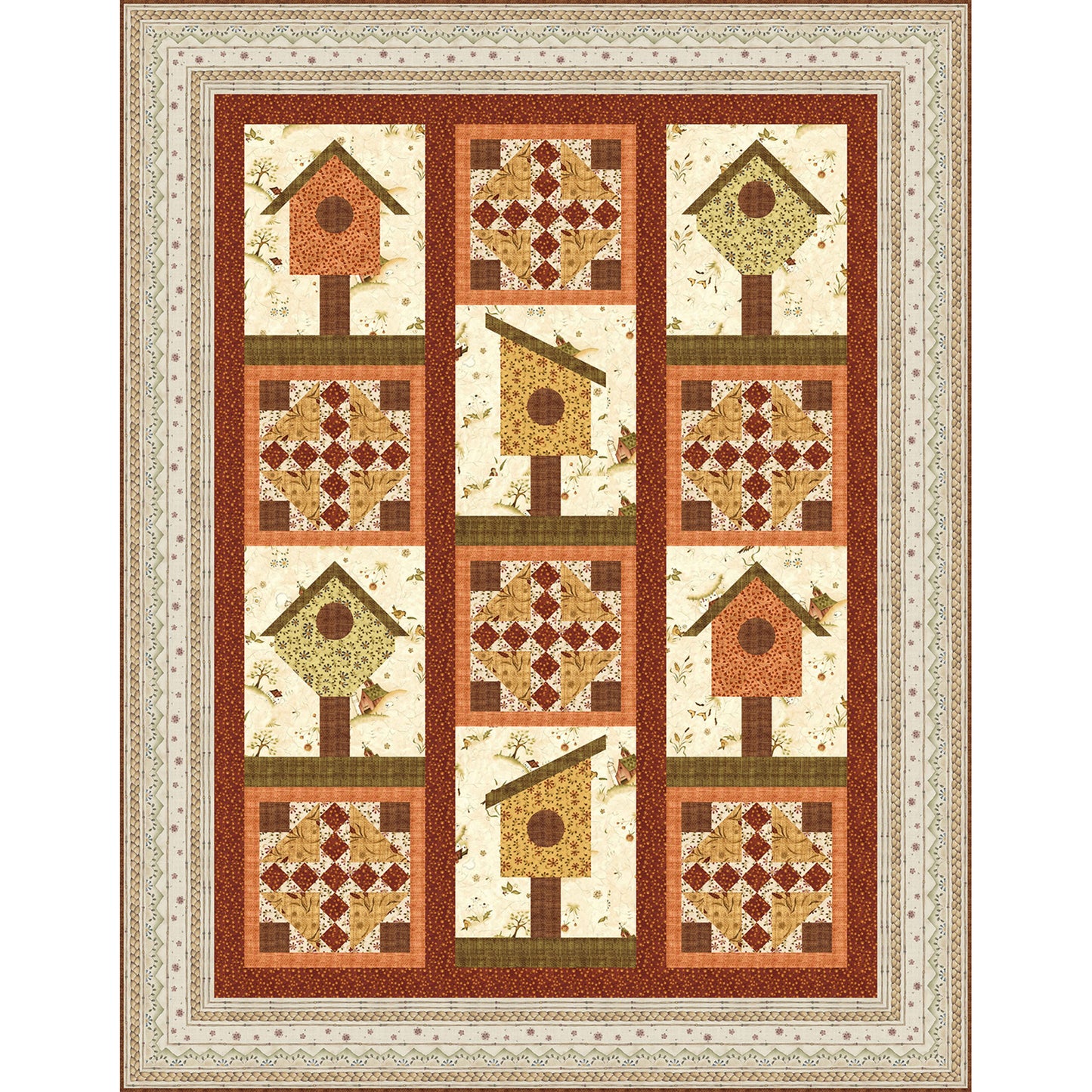 Adorable quilt pattern features fun birdhouses. Any bird lover would love this quilt.