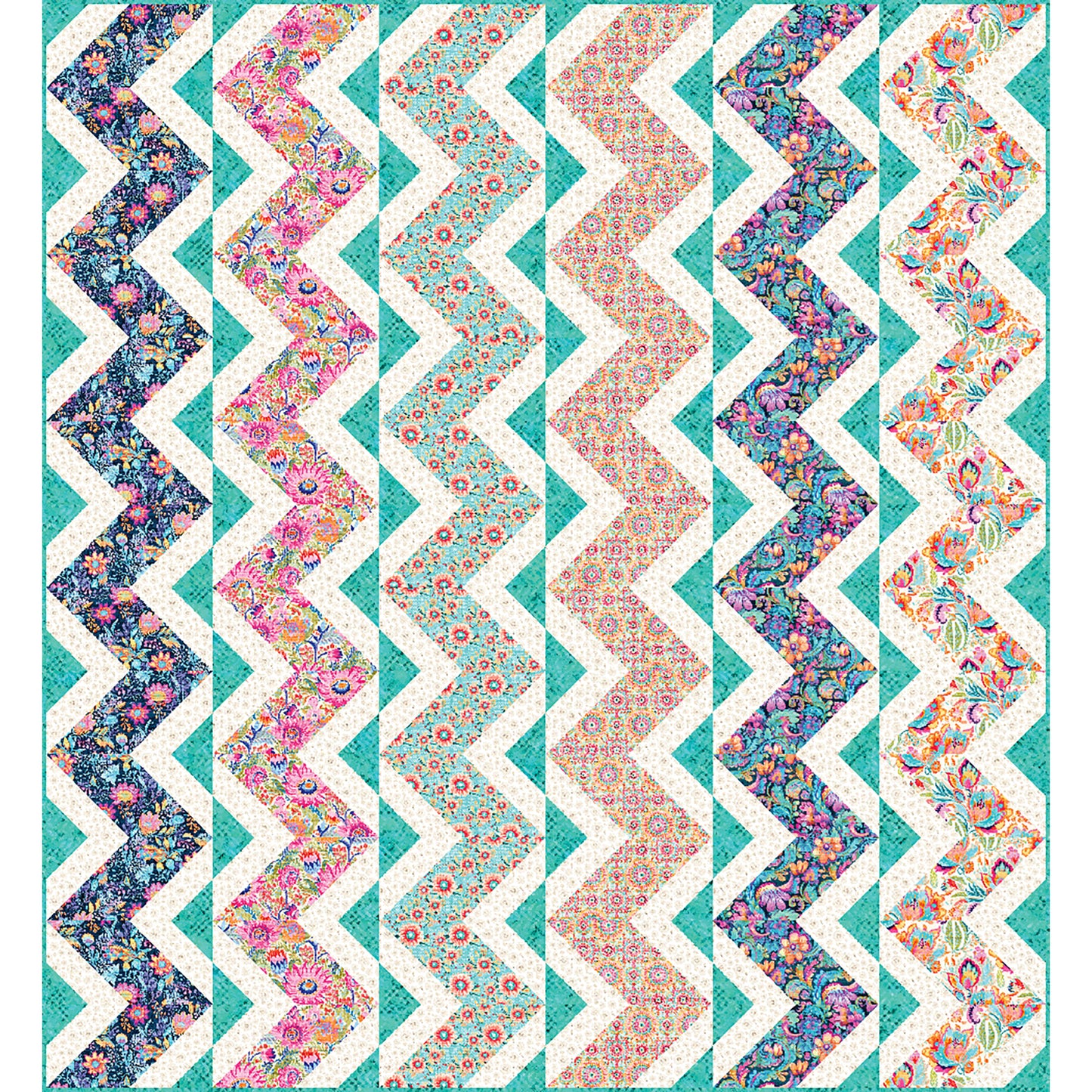 Garden Lattice quilt pattern by Matthew Pridemore from The Whimsical Workshop. Fabric shown in the sample quilt is "Exotica" fabric line from QT Fabrics.