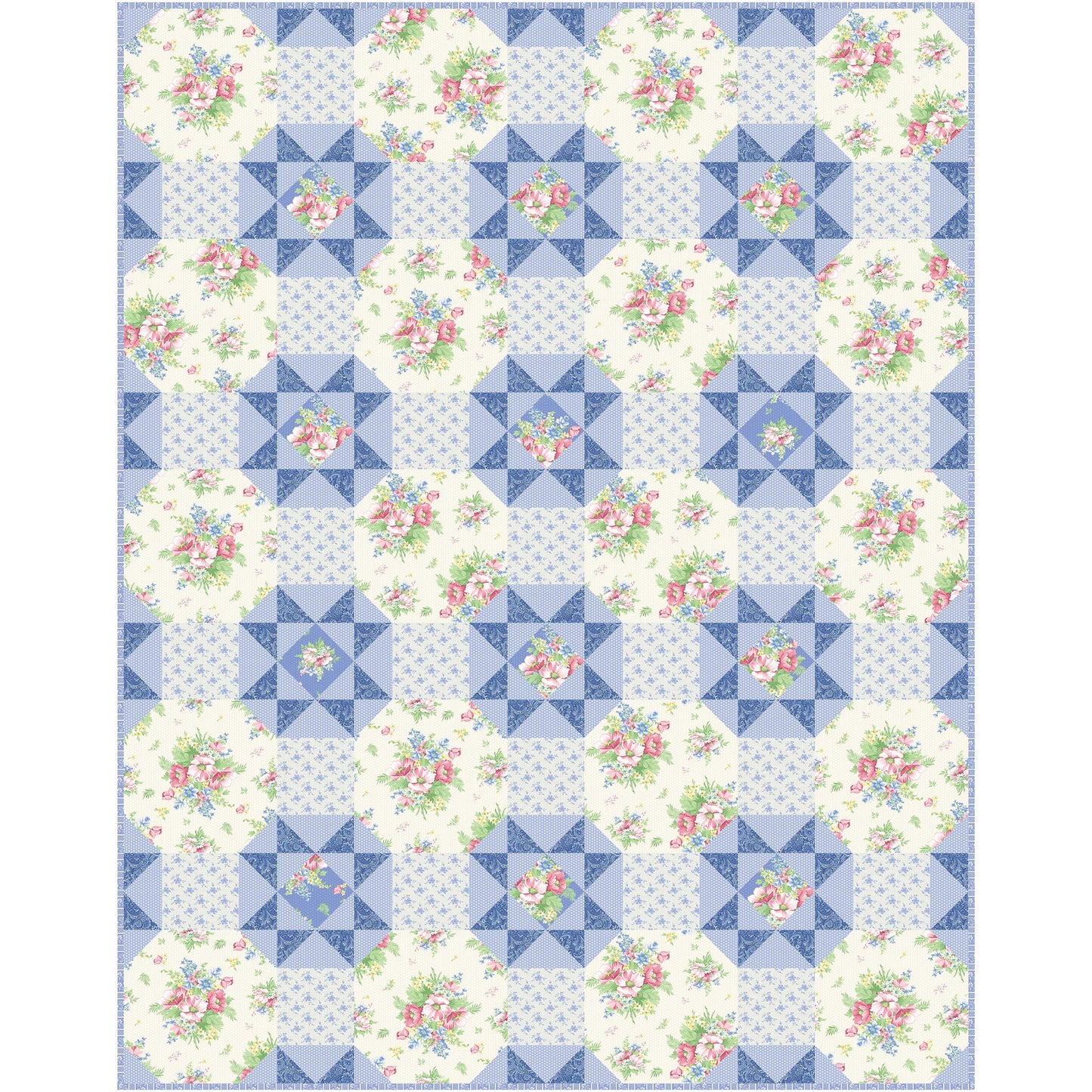 Bring the beauty of a spring garden into your home with the Garden Stars quilt pattern. Featuring soft florals and soothing colors, this design is the perfect way to celebrate the serenity of nature’s blooms. Crafted with April’s Garden fabric collection by Benartex, this quilt combines delicate, pastel florals with a harmonious palette that captures the gentle beauty of a blooming garden. The pattern features simple blocks that come together to create a striking design, making it an excellent choice for quilters of all levels. The result is a quilt that feels both fresh and timeless, with each block contributing to a cohesive and charming star motif. At 66" x 84", the finished quilt is the ideal size.