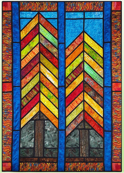 Quick and easy strip piecing creates your own glass forest! Pieced quilt pattern. Made to look like a stained glass window.