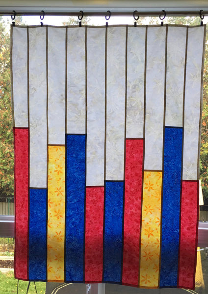 Make your own unique window hanging. The sewing technique is a reversible pojagi seam so it's totally reversible. The technique is what gives the stained glass effect. No raw edges and no black fabric.