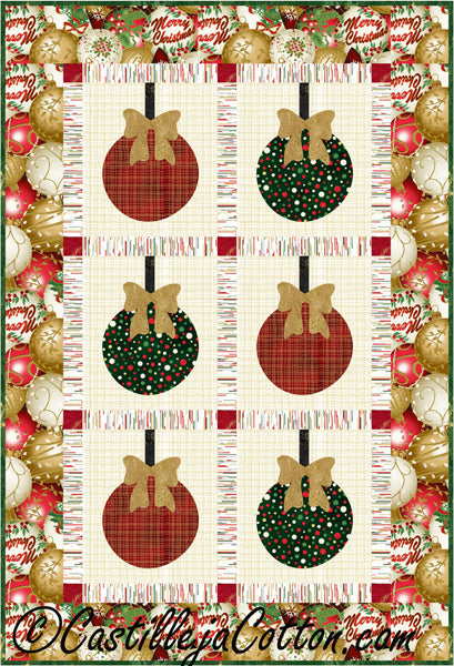 Easy to make appliqued Christmas ornaments wall quilt. Can also be used as a table runner.