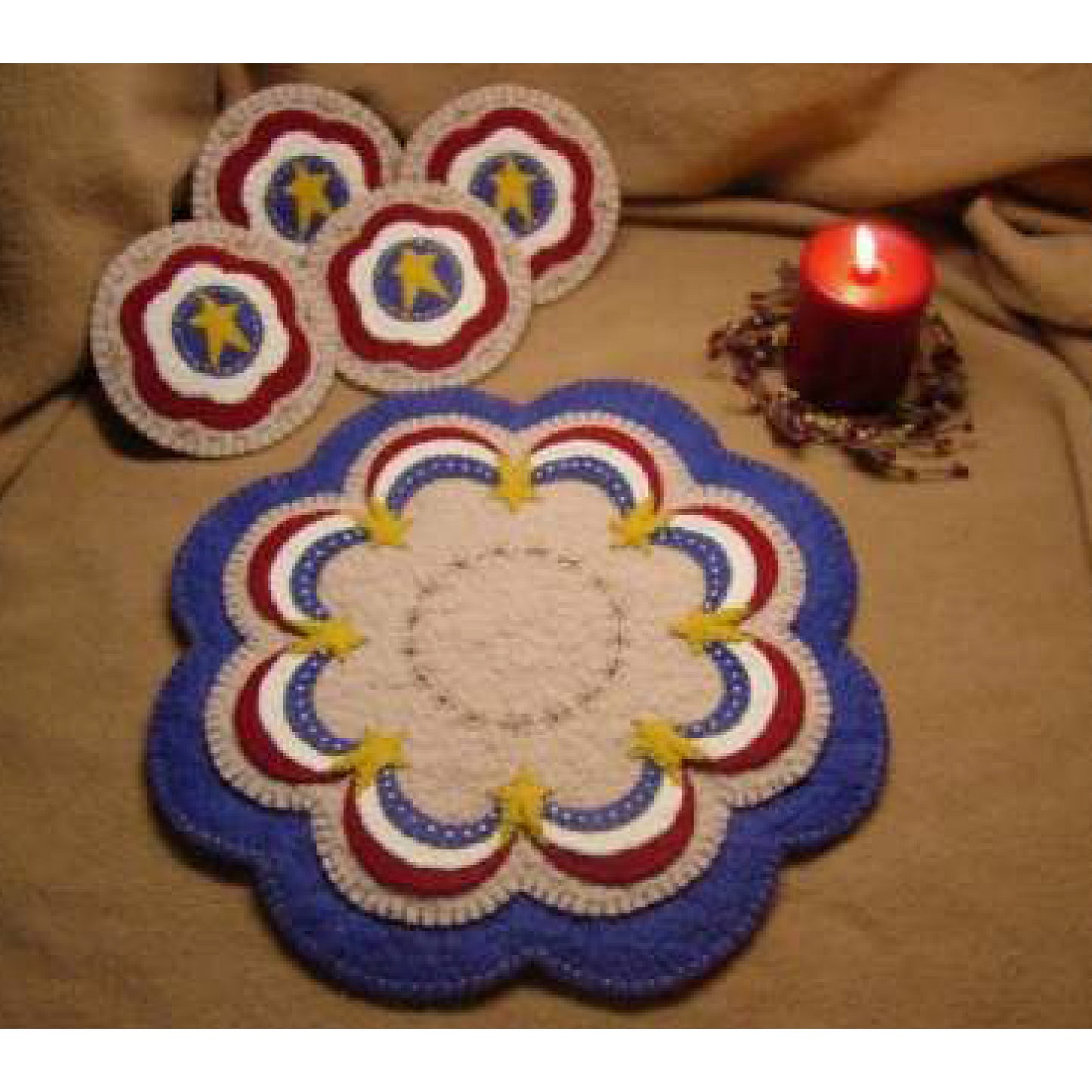 God Bless America! Americana Penny Rug Candle Mat Set PLP-114e - Downloadable Pattern
