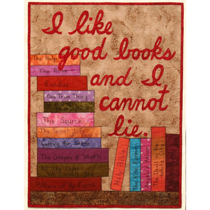 Do you or someone you know love to read? This wall quilt pattern is easy to make and personalize with your own favorite book titles. Also, it makes a great gift for others who enjoy reading. Directions are included for fusible applique lettering with your own handwriting.