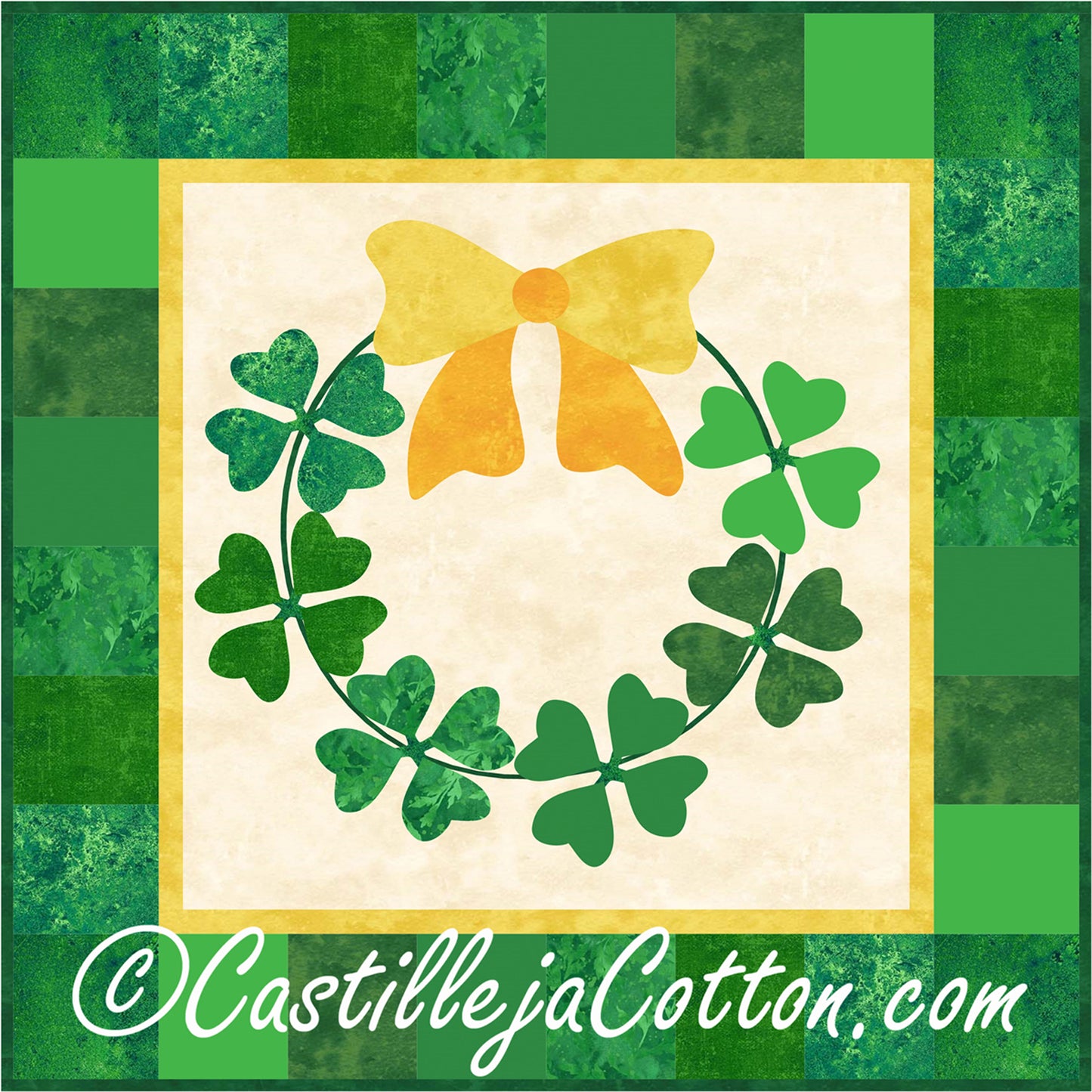 Easy to make four leaf clover wreath. Bring some Irish luck into your home with this mini wall hanging pattern. Fabric shown is Nothcott's Bold Beautiful Basics.