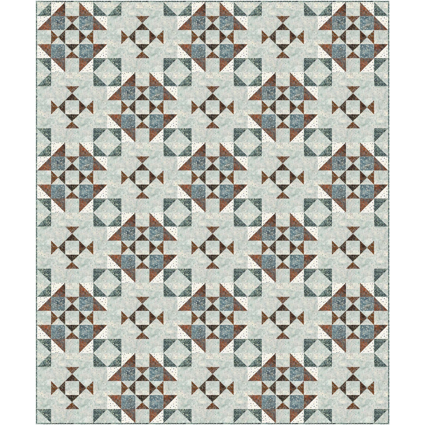 Stylish Gatsby-inspired quilt. The earthy browns, greys and cream create a sophisticated look. Fabric featured in example quilt is Baliscapes - Gatsby by Anthology Fabrics. Quilt finishes at 75" x 90".