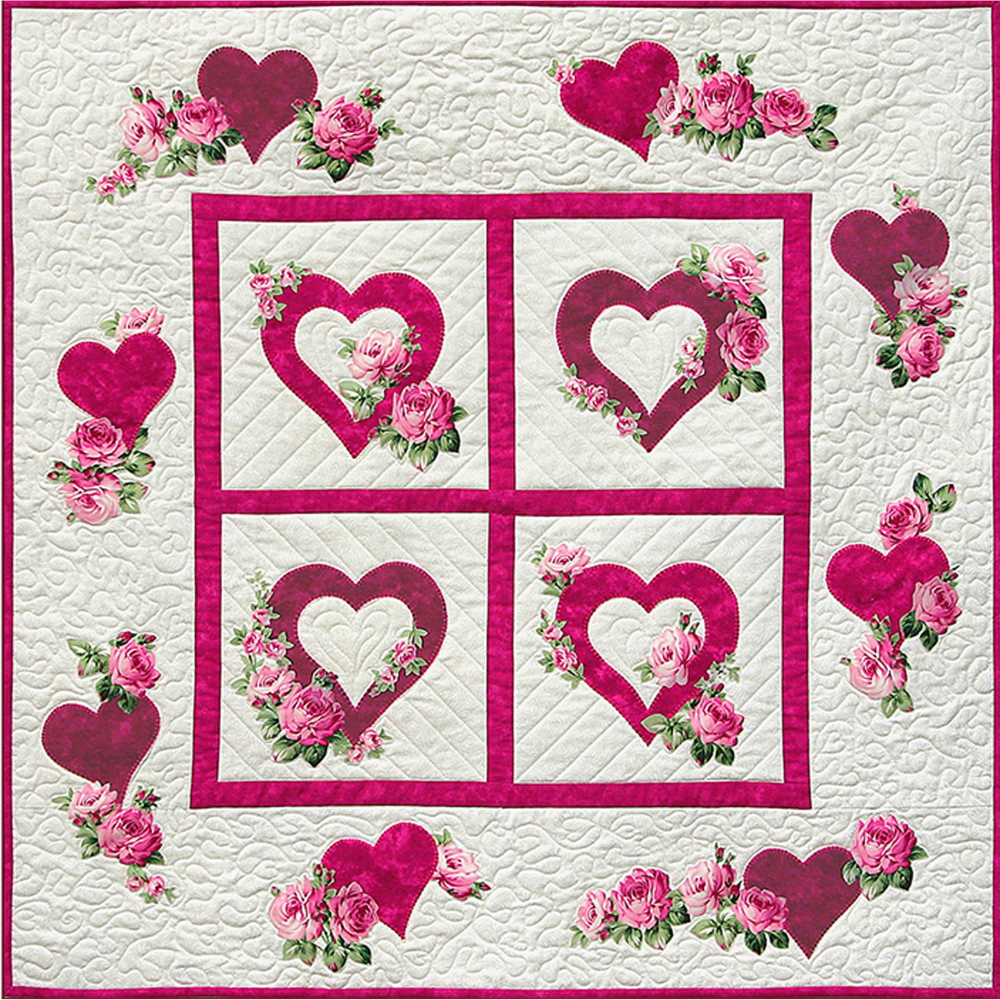 Romance will be in the air with this 37 1/2" square wall hanging. Combine your favorite flowered fabrics with simple heart shapes in the easy, modern fusible technique version of "broiderie perse," an applique method, centuries old. Fairies, Butterflies and bugs may also be tucked in around the flowers.