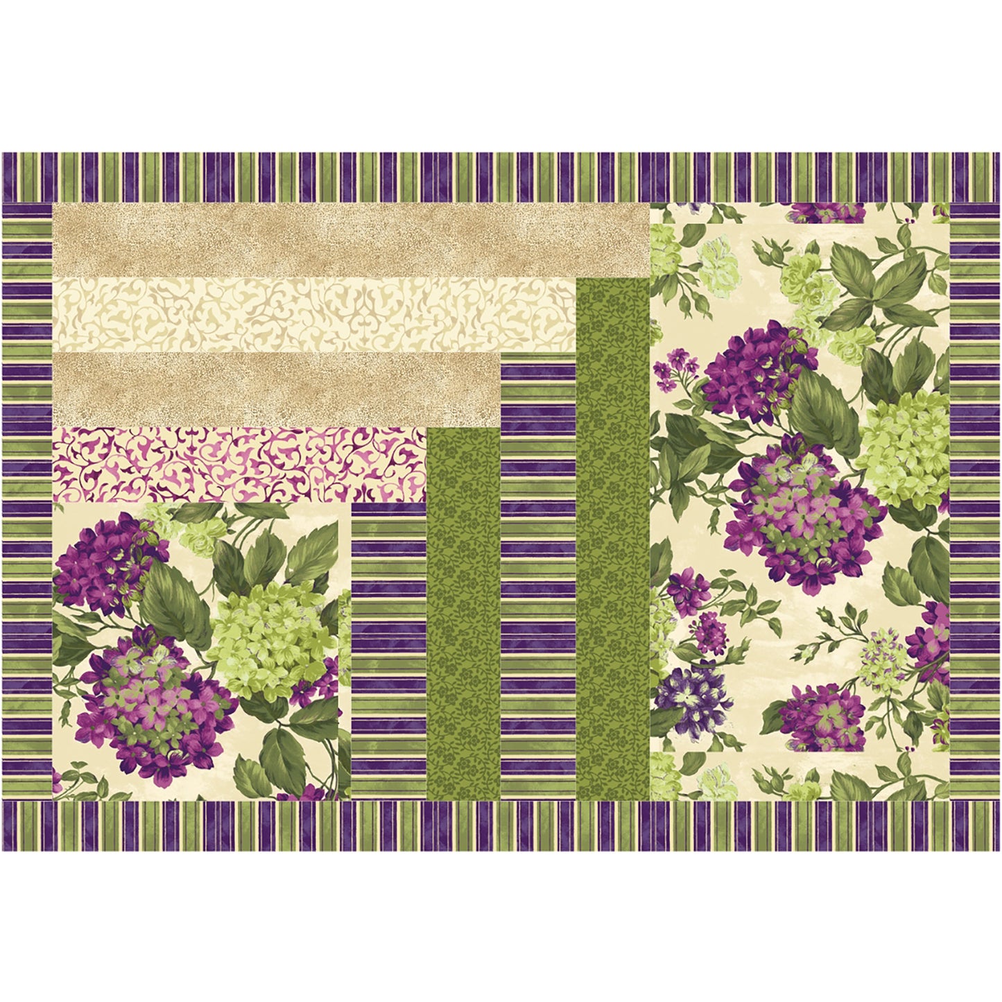 A cottage chic wall quilt or table topper set that includes 2 charming placemats & 2 very simple napkins designed by Golden Thyme Designs. Pamper yourself with the flavor of a Bed & Breakfast getaway without leaving your home. The fabric shown in the sample quilts are the Leading Ladies Encore Collection by Ro Gregg for Northcott Silk, and Freckles Collection.