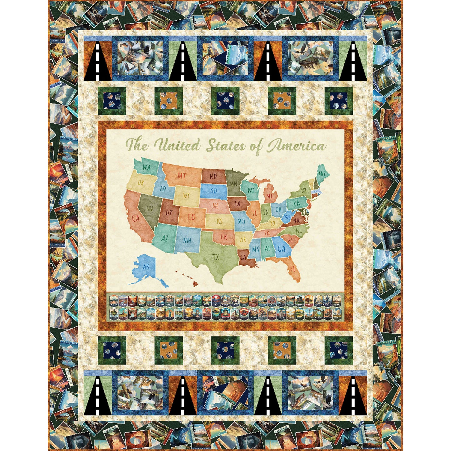 Ready to hit the road with this fun and educational quilt pattern using a US map panel or any fun map panel you might find.