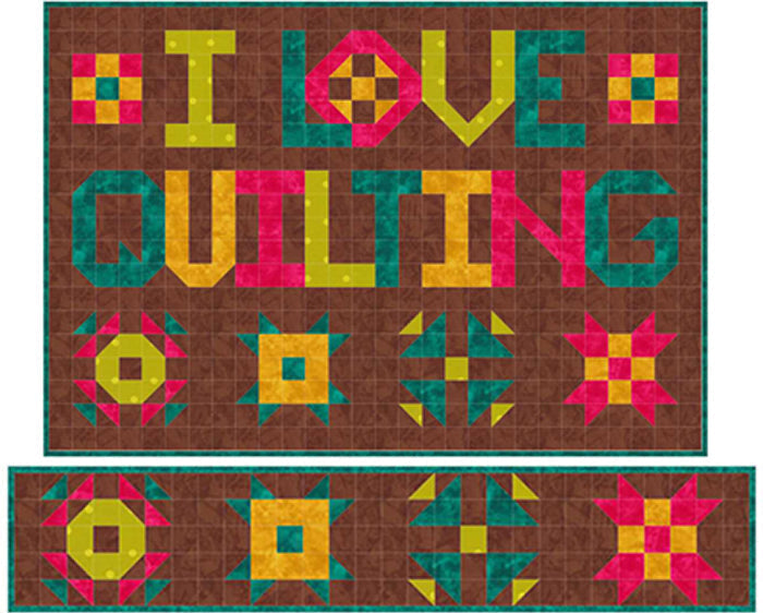 Show your love of quilting with this fun pattern. The pattern includes instructions for a wall hanging and a table runner.