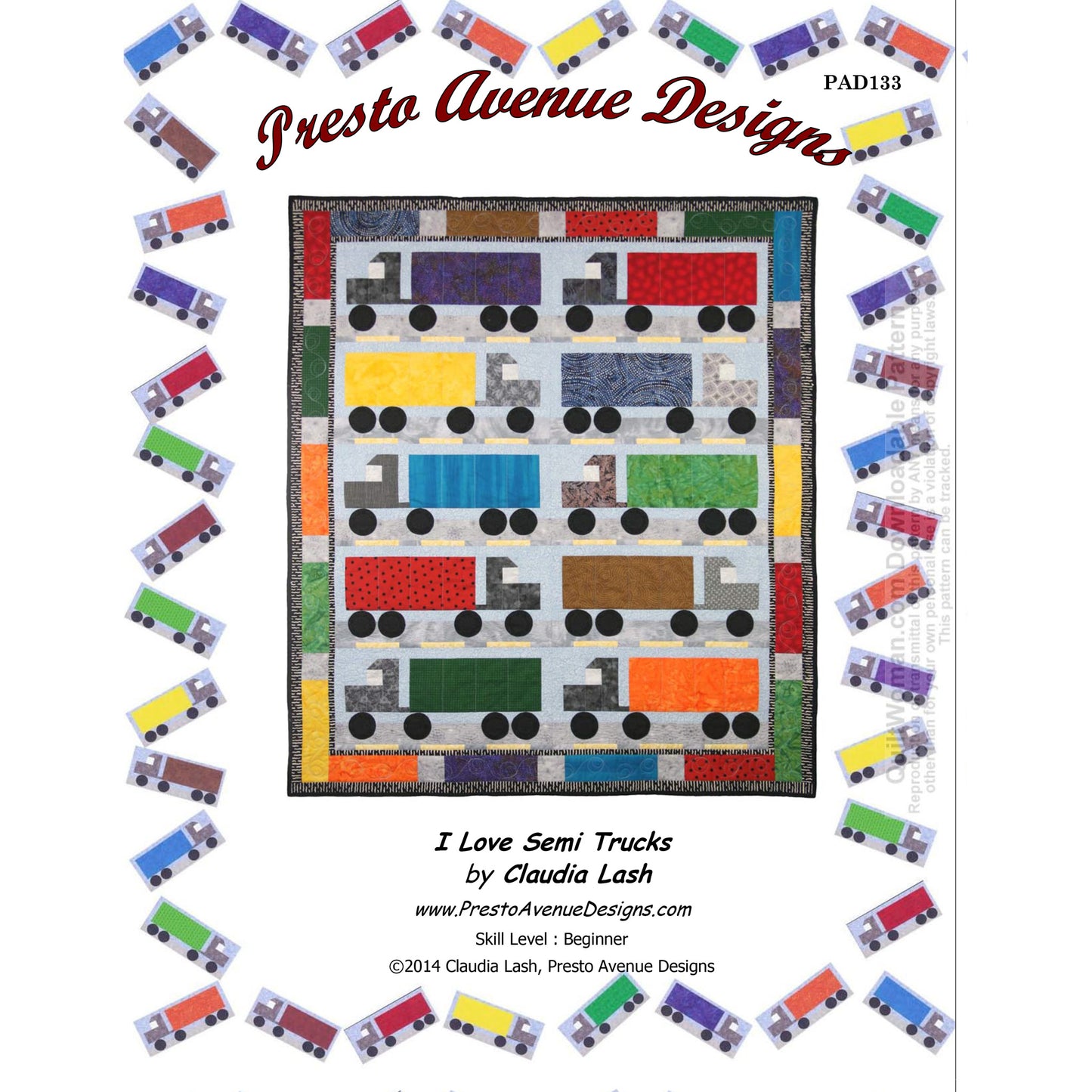 I Love Semi Trucks Quilt PAD-133e - Downloadable Pattern