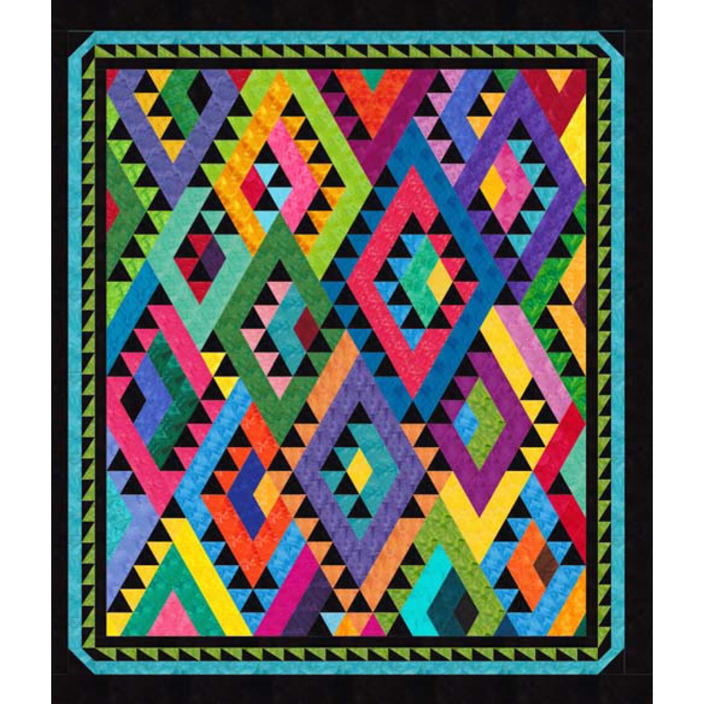 Bold colors and a Southwest flavor make this striking quilt pattern catch the eye. Made using a rainbow-hued Jelly Roll and black background fabric, the diamonds are cut using Marti Michell's "Stripper" templates for fast and accurate cutting. Simple diagonal piecing with no set-in seams makes the assembly easier than it looks.