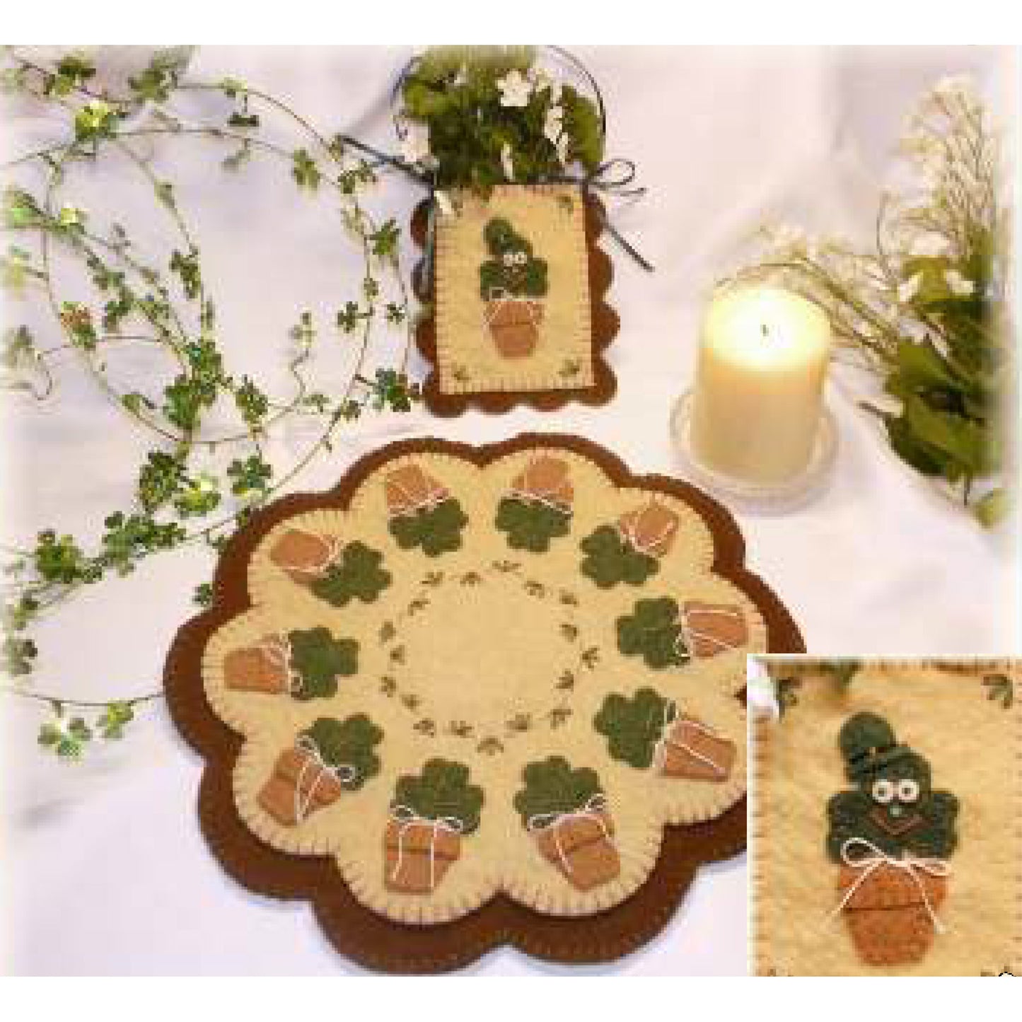 Irish Blooms - St.Patricks Day Penny Rug Candle Mat Pocket Set PLP-133e - Downloadable Pattern