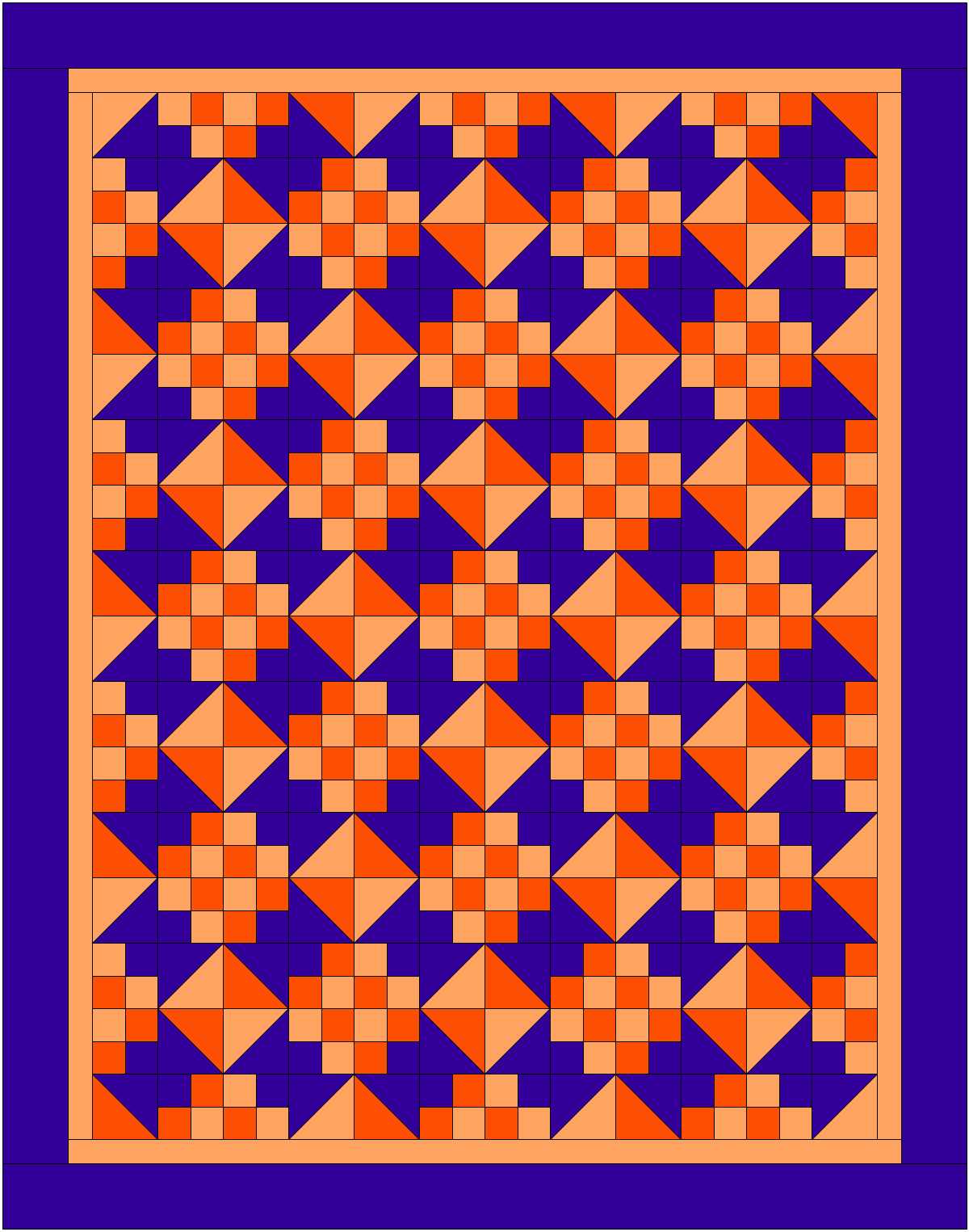 This quilt pattern is created with the color wheel in mind and complimentary colors.