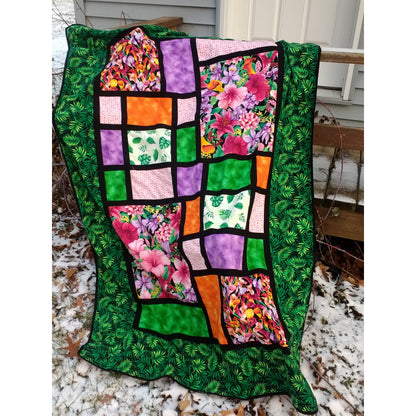 Use a panel print for this quilt, or substitute a large scale print in place of the panel pictures. You can even make the blocks scrappy, using whatever you may have in your stash. This quilt pattern includes instructions for twin size and lap size.