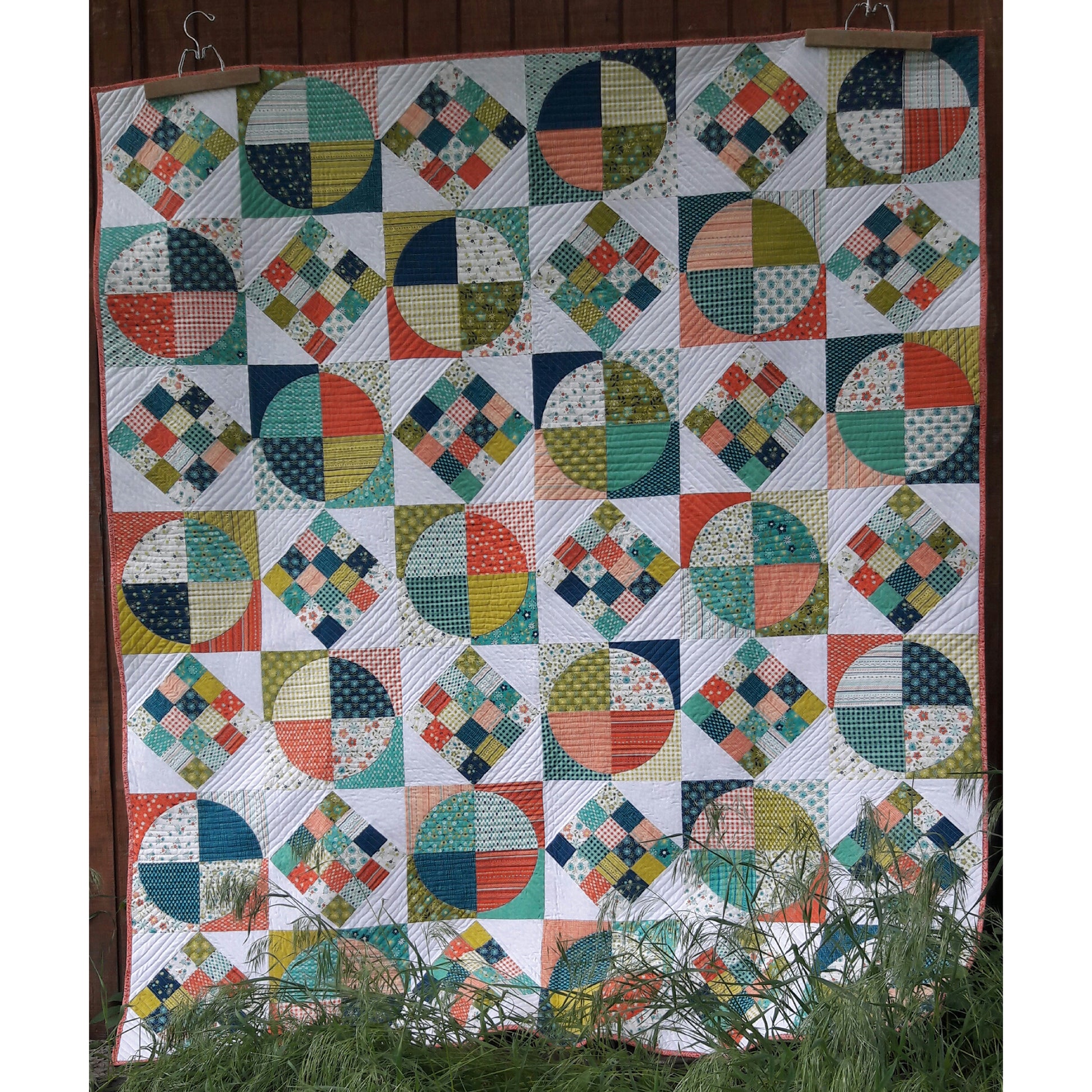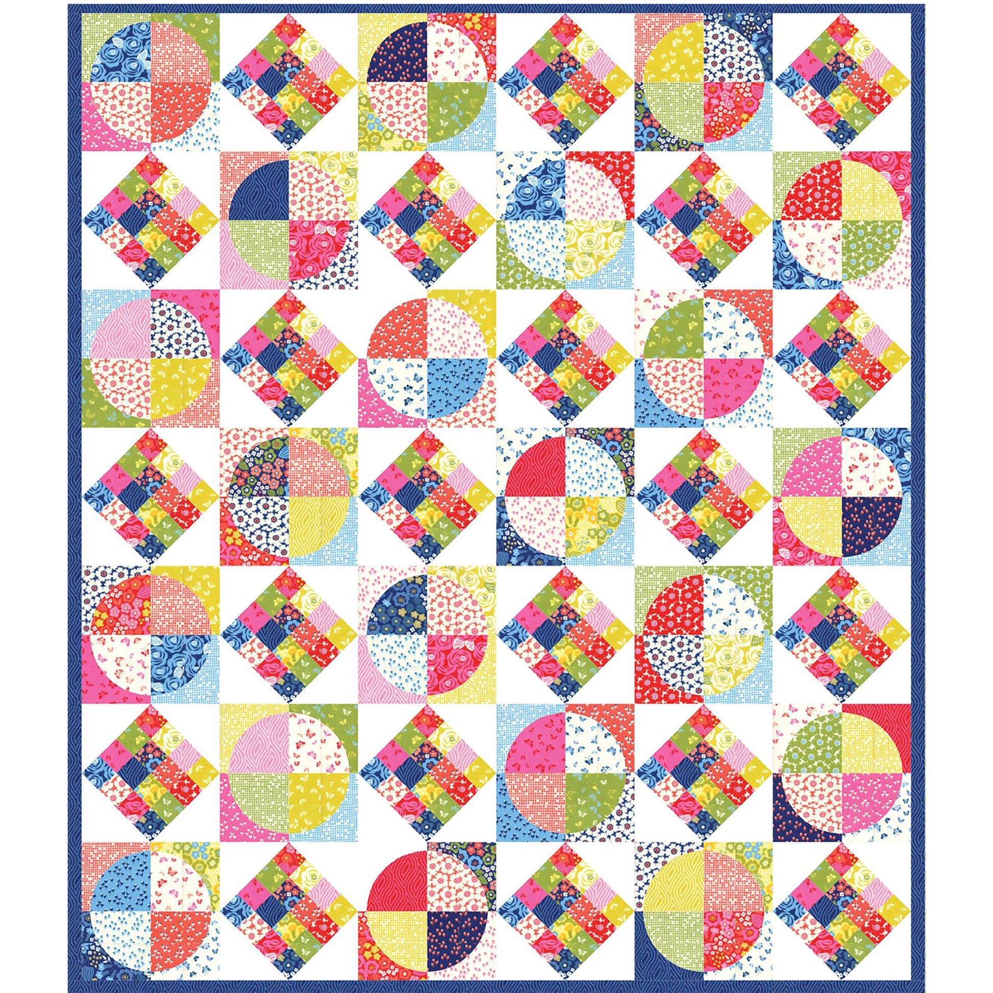 This fat quarter friendly patchwork quilt pattern is a two-block wonder. It features pie circles and on point square cut cakes. I designed it to honor my grandparent's bakery.