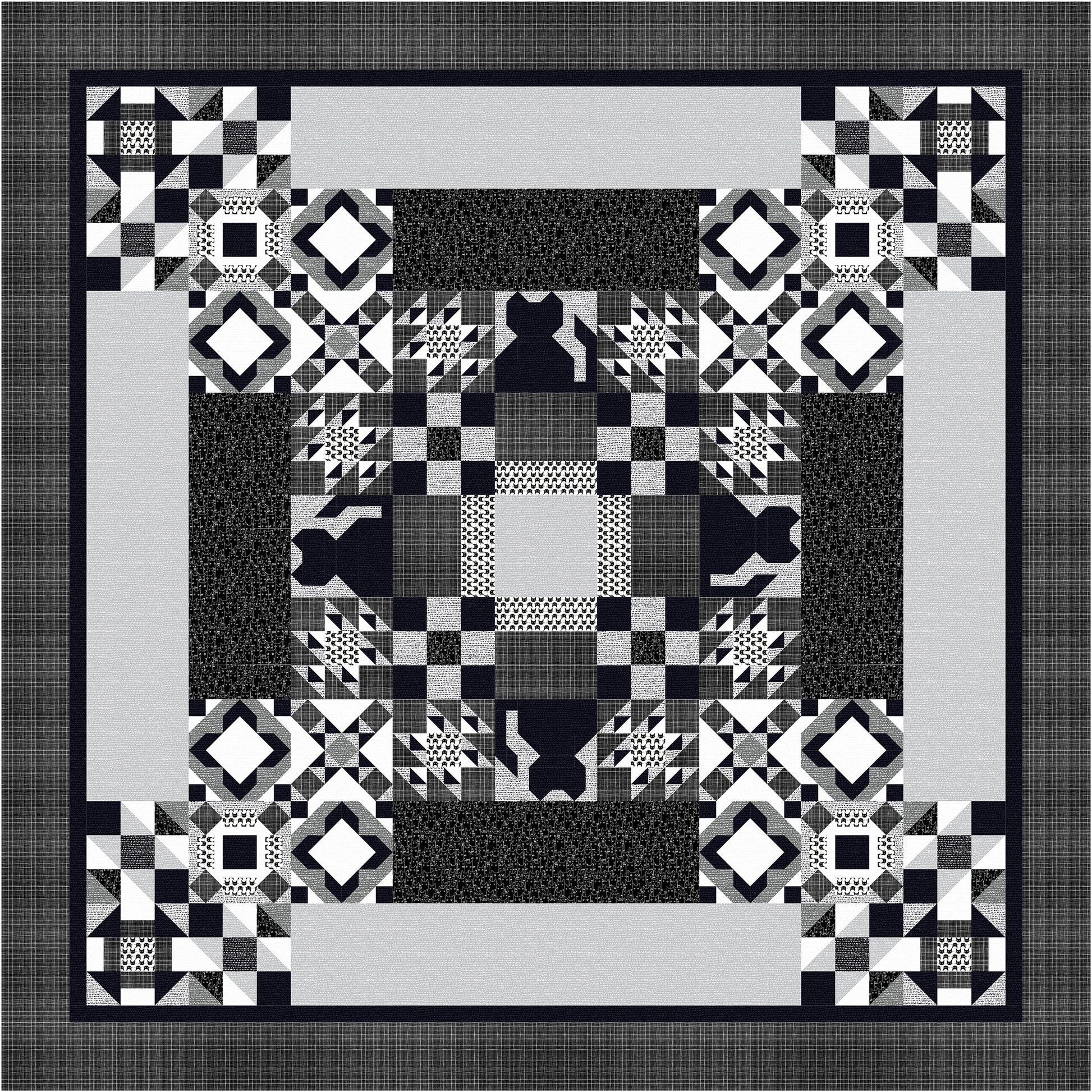 Kitty in the Middle is a wonderful Block a Month or Quilt Along pattern. It has nine different blocks and the borders - one for each kitty's lives! Stretch out your fun by doing one a month or get in touch with your inner kitten and play with them all at once.Fabric shown in the sample quilt is Dear Stella's "Les Chat Noir".