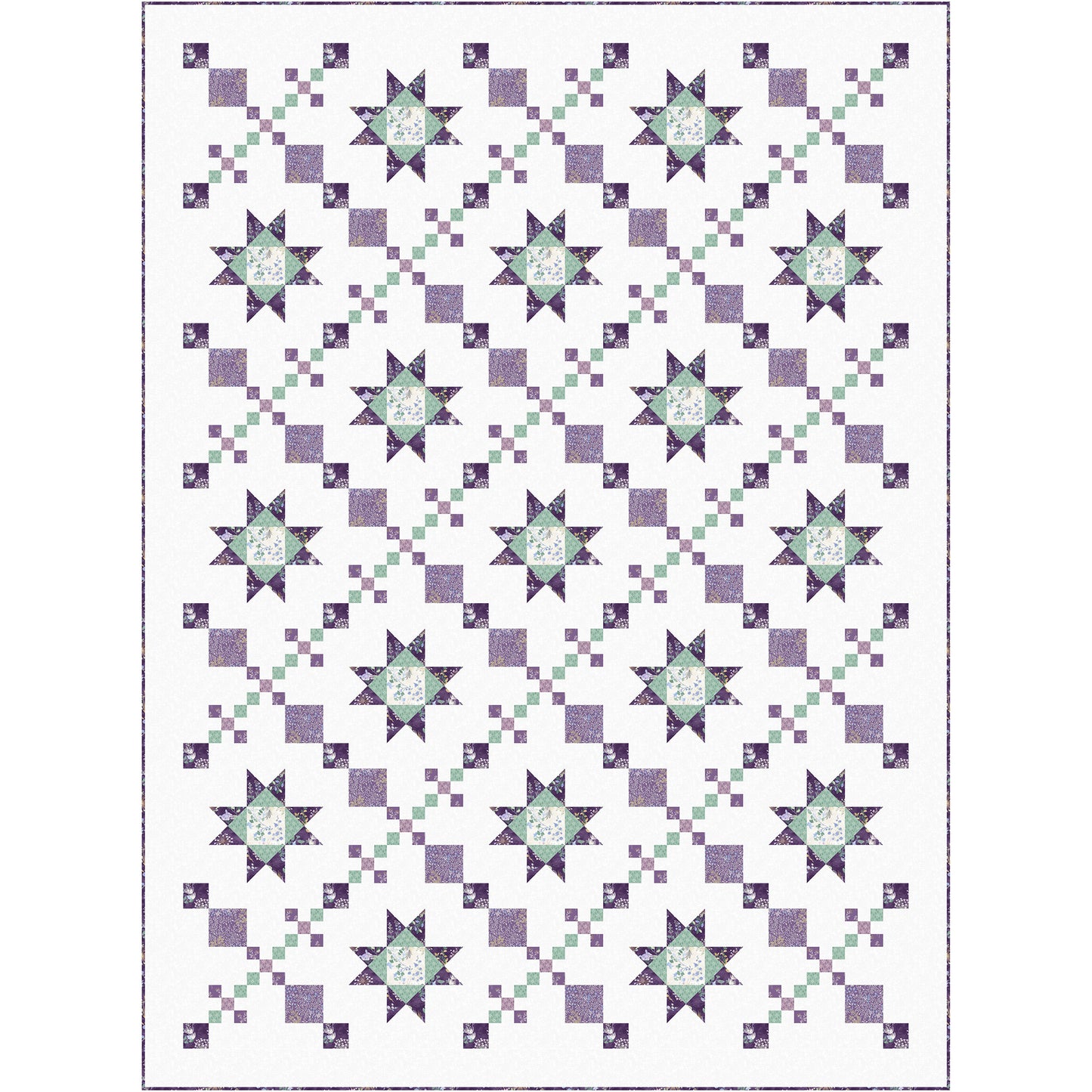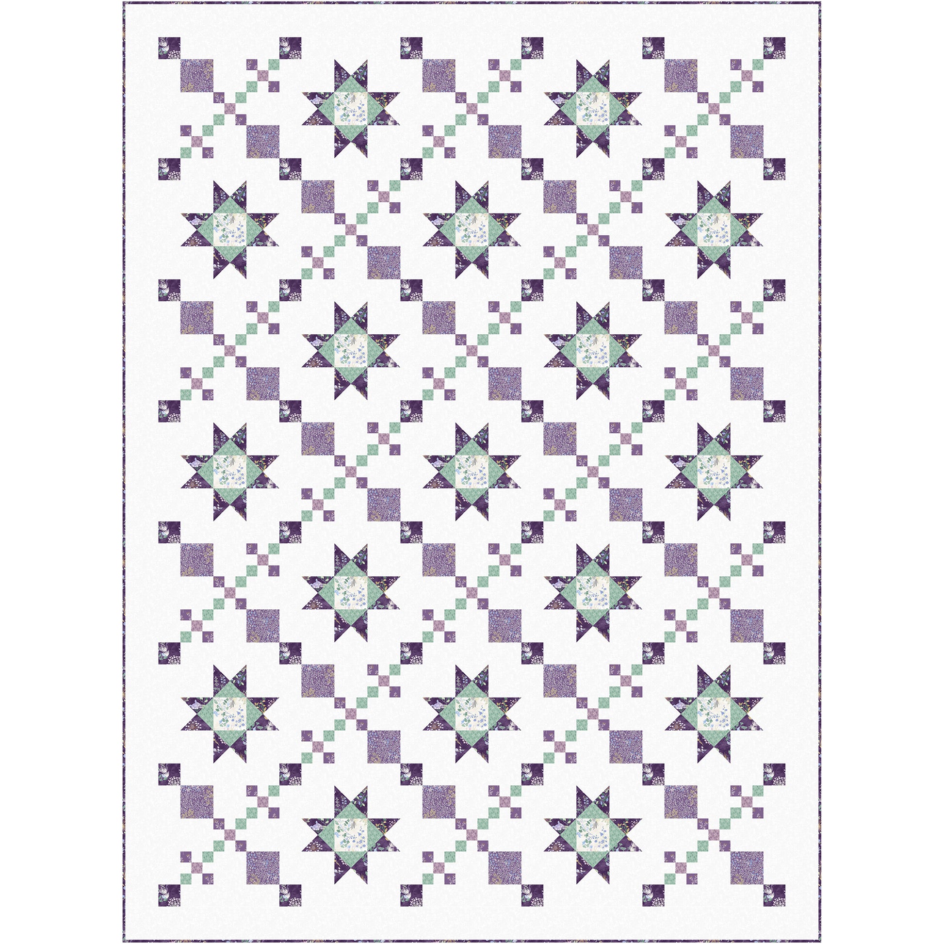 Beautiful "Lavender Lane" quilt pattern features stars and lanes in purple/lavender and light blue/green. Just two blocks to complete this lovely quilt. Would be lovely in so many different color combinations. What fabric will you choose?