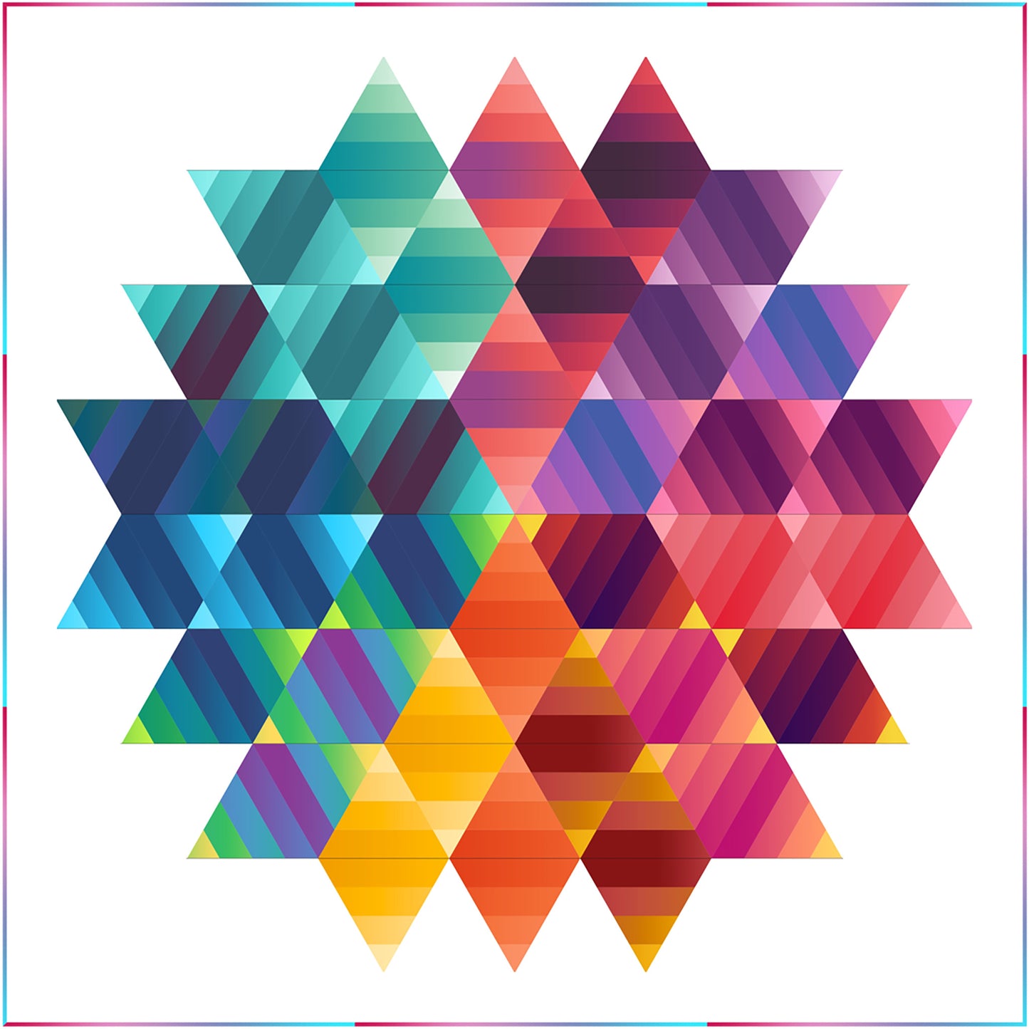 This fabulous quilt pattern is made using 2 1/4" strips, not just any strips, Ombre Strips! The Gelato Pairs Strip Roll. 20 colors - 2 strips of each color. The ombre gives the quilt that wonderful illuminating effect. This pattern also uses The 60° Triangle Tool. A paper template is included with the printed pattern, but you might just want to get the tool for yourself.