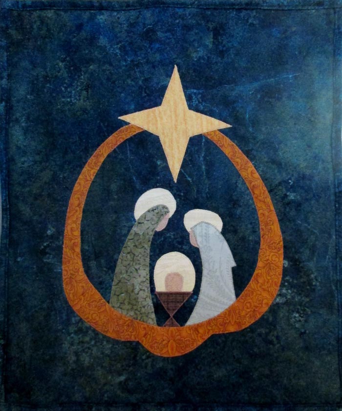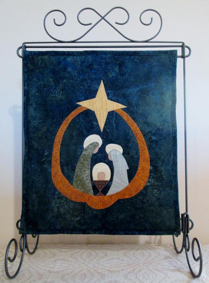 For a quick gift or decoration, the applique and quilting are done in one step by stitching the fusible applique after layering with the batting and backing. This quilt will fit on a wire display stand.