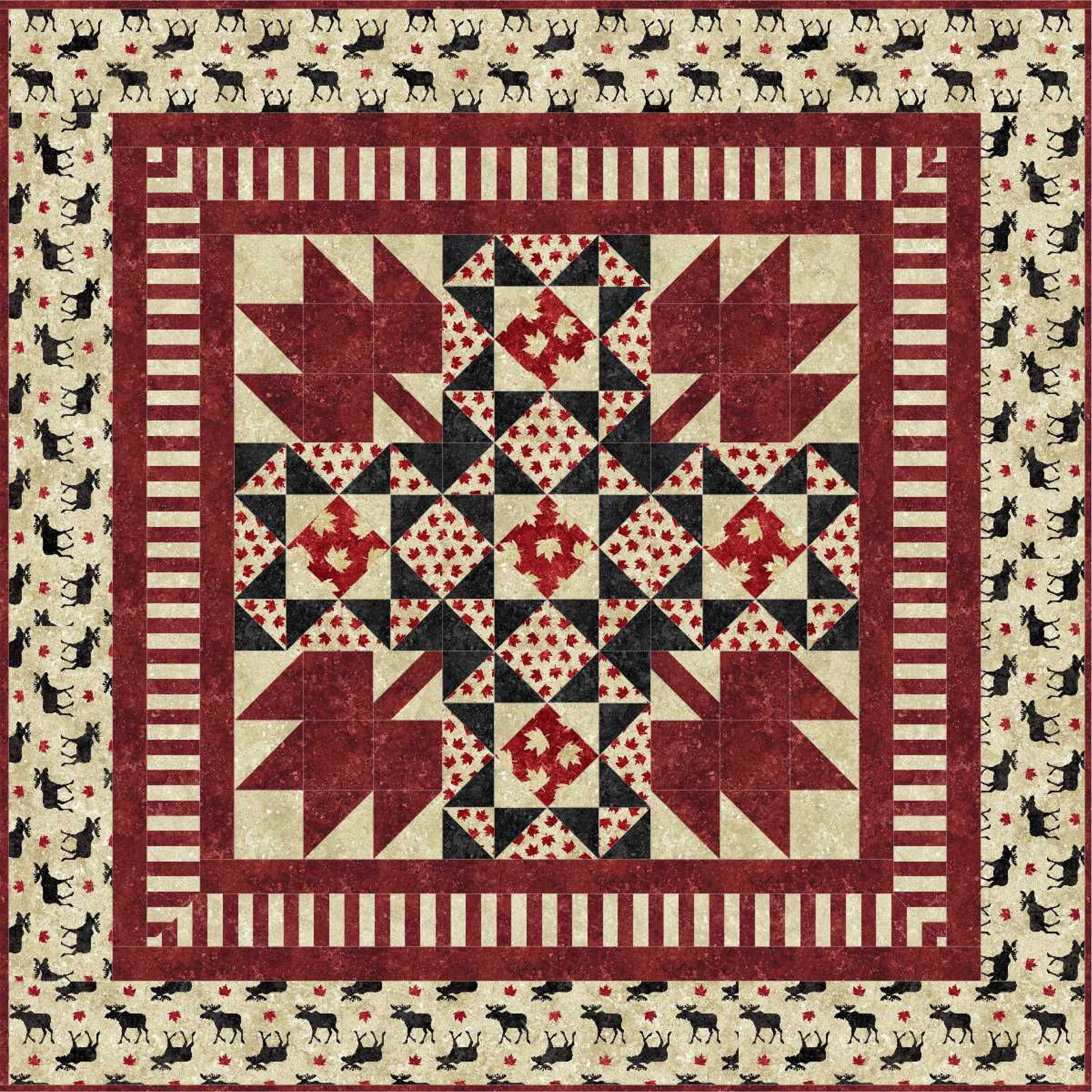 Pieced quilt pattern that comes in two sizes. Quilt features four maple leaf blocks surrounding an on-point Ohio Star block. This would be a perfection quilt to celebrate Canada Day or to use as fall decor.