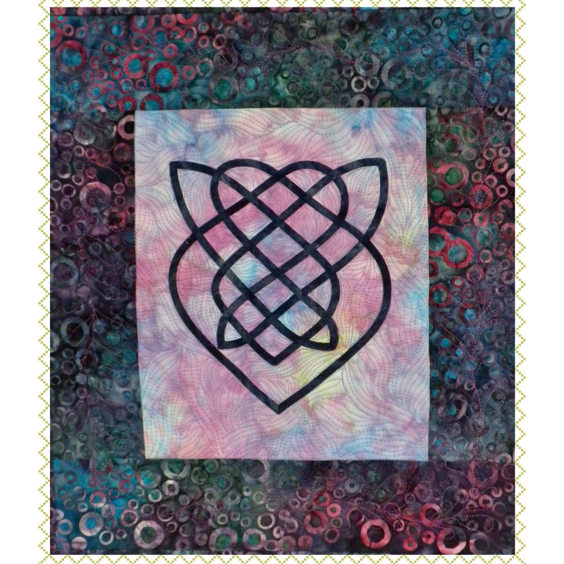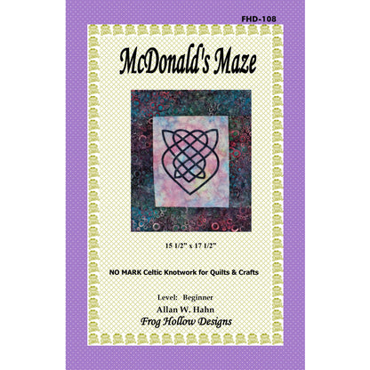 The McDonald's Maze pattern lets you create Celtic knotwork for quilts and crafts with an easy NO MARK method (wow!). The knots are individually created and can be used on any surface or background that you can fuse to! Your choice of hand or machine applique.