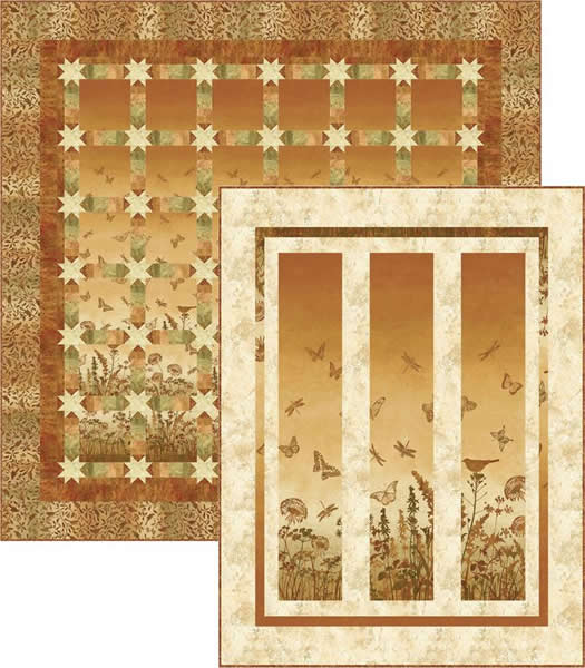 Showcase an ombre print in a lap, queen or king-sized quilt, adding sparkle with sashing stars. The bonus wall quilt pattern can be made in an evening.