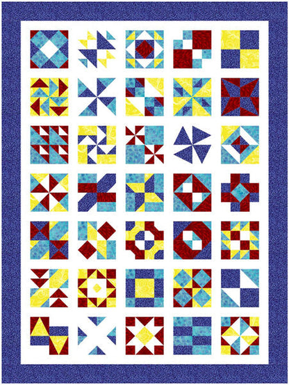 If you love TINY blocks and TINY fabric pieces, then this quilt is for you! Make 35 mini 4" blocks in this cute sampler quilt. Try it in bold primary colors or in blue or pink for a baby quilt!