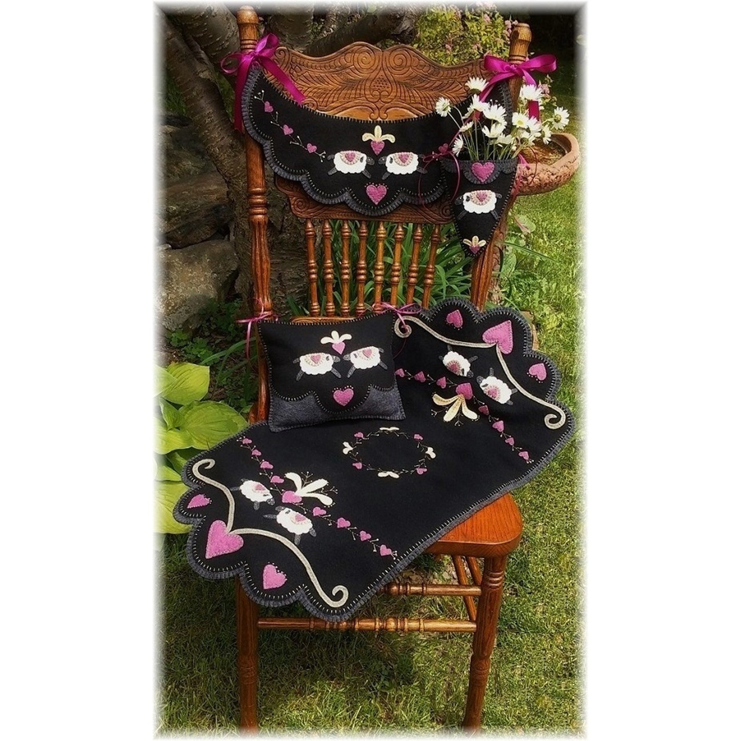 This sweet set of "woolies" has a pretty Victorian flair! The runner measures 15" by 30", but you can certainly make it longer if you want to. Quilt pattern also includes a swag, pillow, and cone pocket. Create these lovely pieces using wool or wool felt.