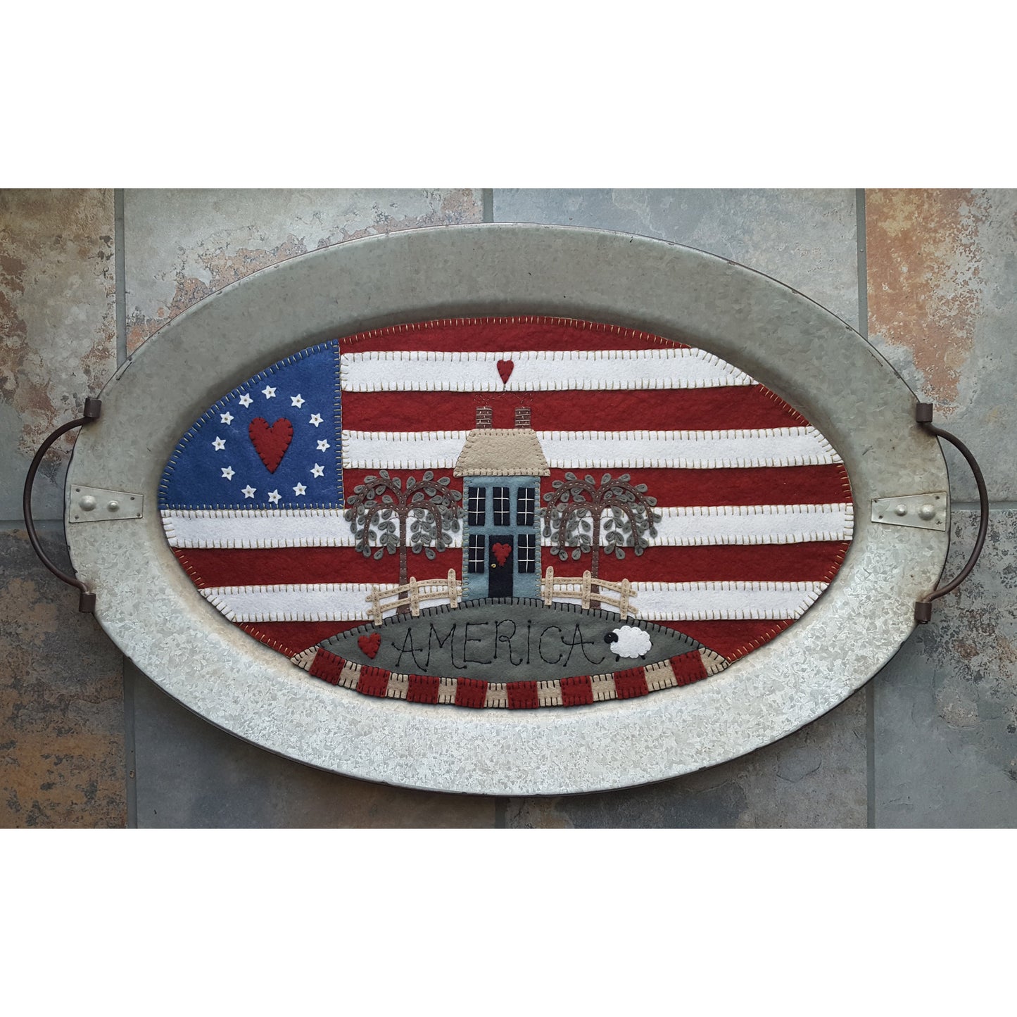 Show your love for our great country on Memorial Day, the 4th of July or any time of the year with this patriotic table mat! It measures 12 1/2" by 22"and can be stitched up using wool felt or wool. It looks simply beautiful on a coffee or dining table. Such a wonderful display of Americana!