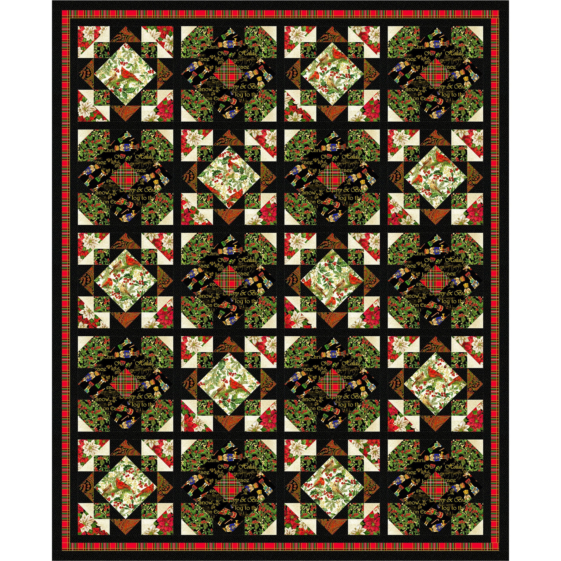 Just in time to make for Christmas, this wreath theme quilt is purrfect! Pieced Christmas quilt pattern.Fabric shown in the sample quilt is Deck the Halls by Timeless Treasures.