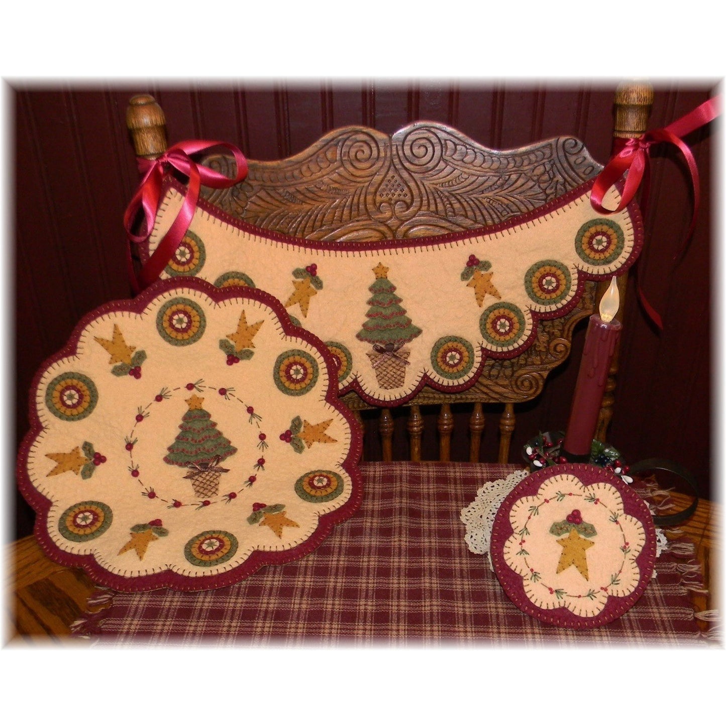 This is such a beautiful Christmas set for your kitchen or dining room! This quilt pattern is easy to make using wool or wool felt.