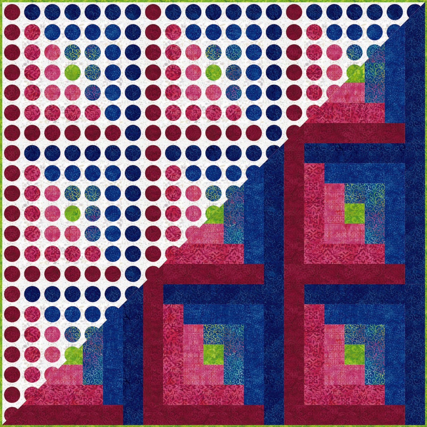 This quilt pattern is so fun and unique. Use the log cabin block to create this beautiful quilt. The poke-a-dot side is made with applique circles (template included).