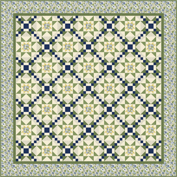 This fresh and cheerful king size quilt features alternating blocks that create a lovely lattice effect reminiscent of a beautiful cottage garden.