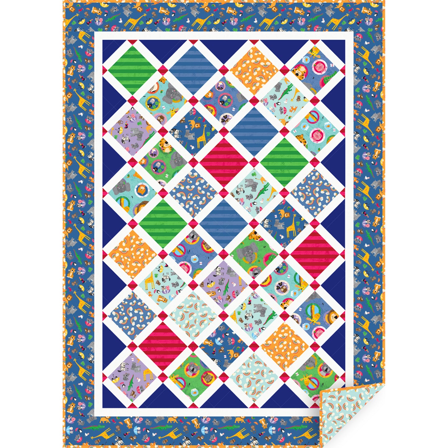Fabric shown in the sample quilt is Clothworks Noah and Friends. (Available 2021-08-01)