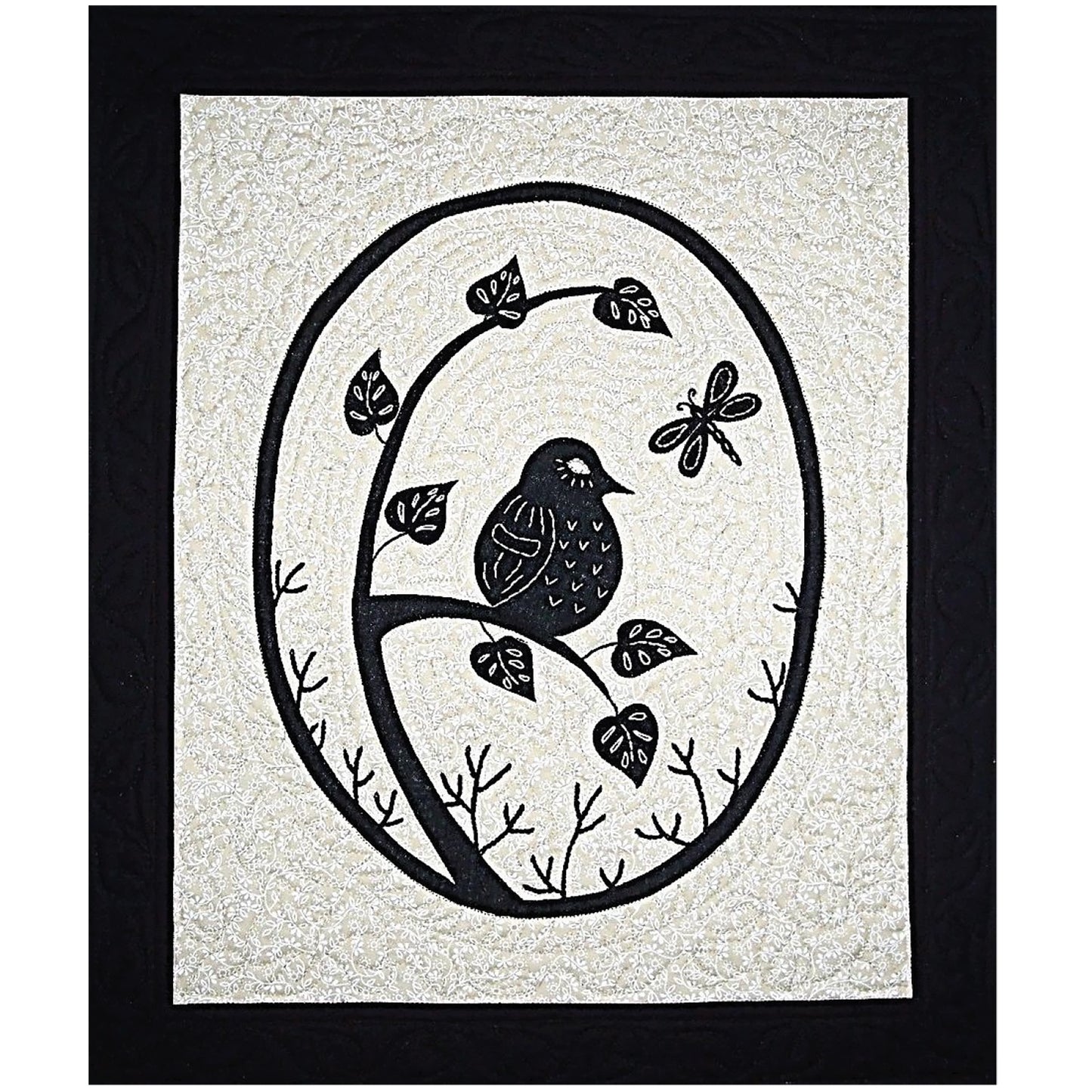 Silhouette fusible applique and needlework quilt pattern. Can be used as a table runner or wall hanging.