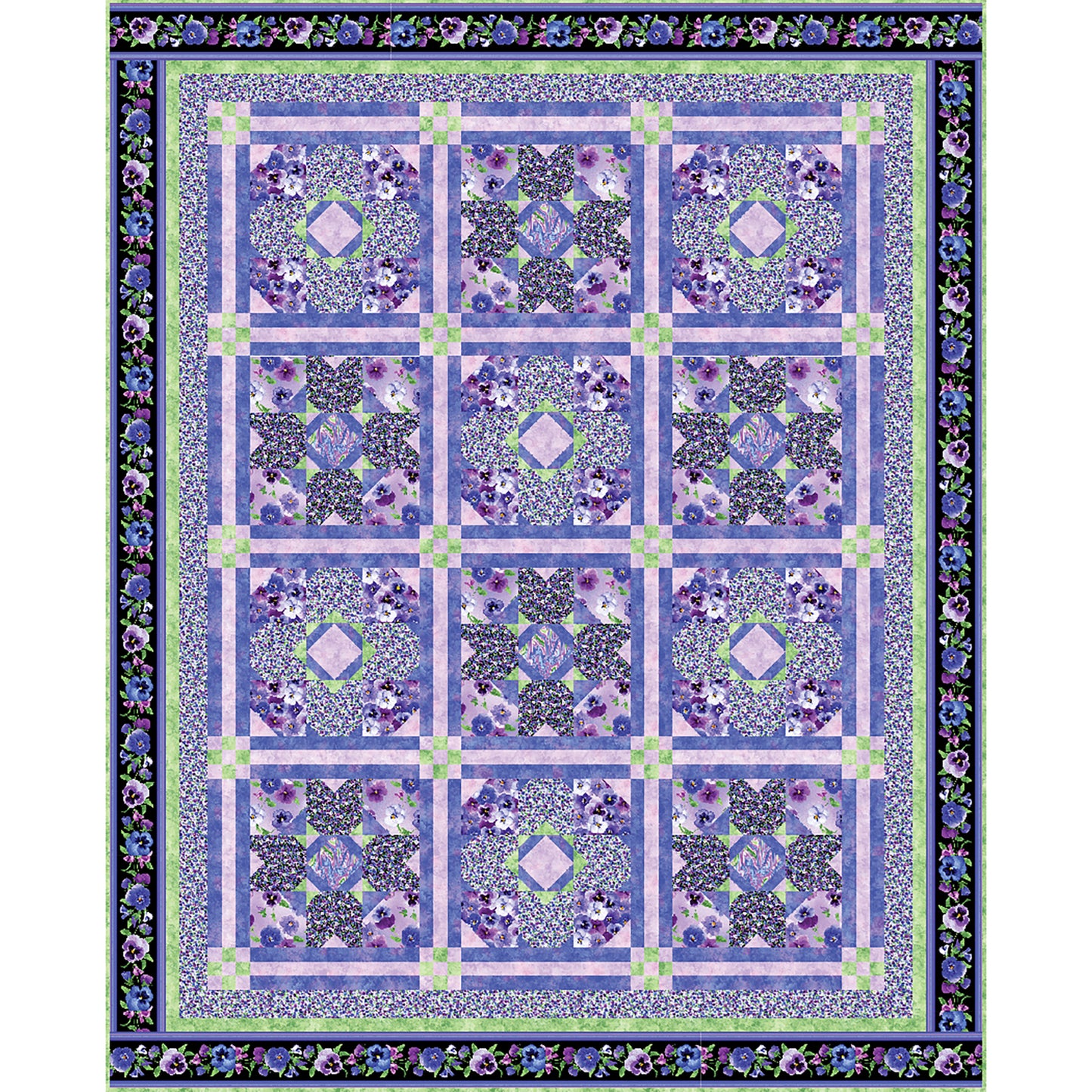 Create a lovely, flowery quilt with the Pansy Passion by Matthew Pridemore of The Whimsical Workshop. Fabric shown in the sample quilt is "Pansy Perfection" fabric line from Timeless Treasures.