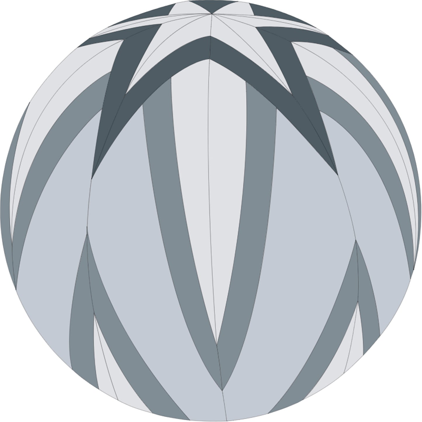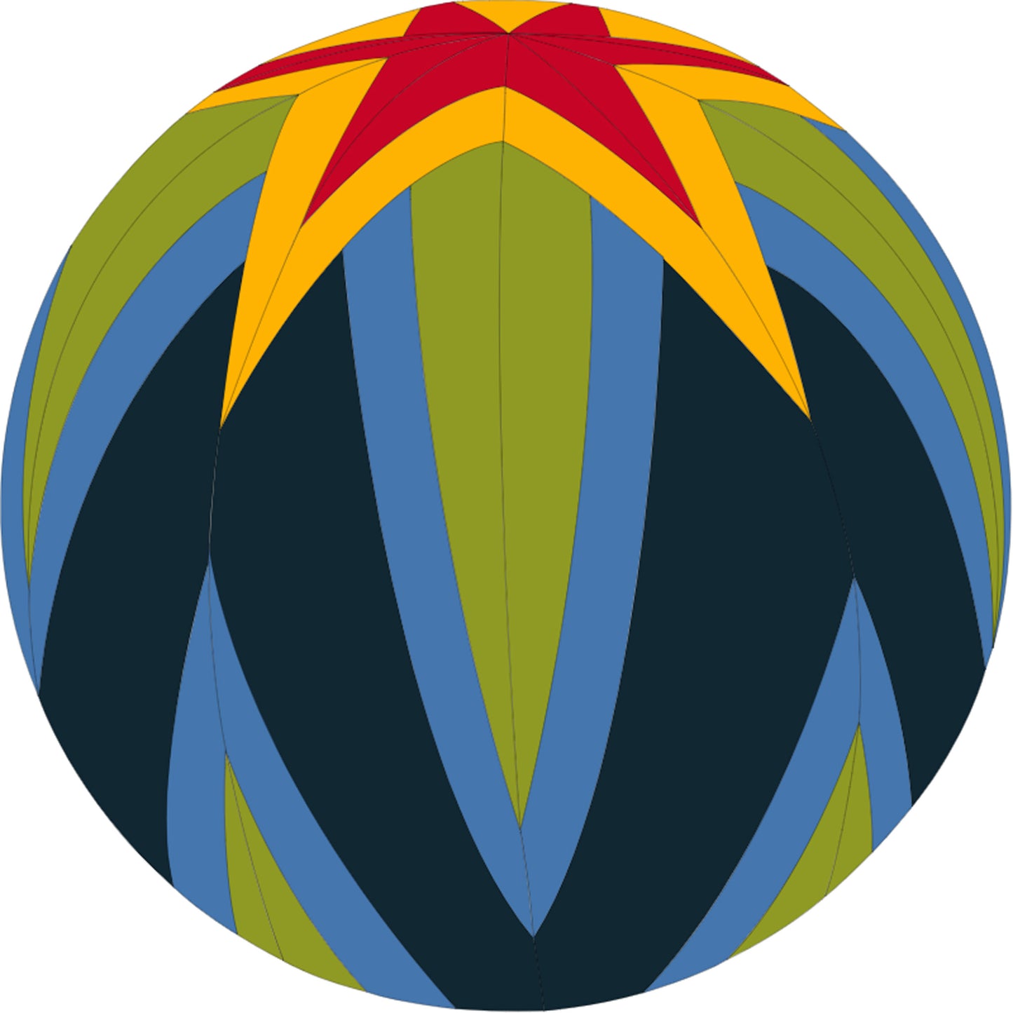 Christmas PatchBalls are a wonderful combination of geometry, curves and tiny piecing. They are a great way to use scraps. They are perfect for a gift for a child or decoration for your home. The Petals PatchBall simulates two big flowers mirrored to each other where the petals are intertwining between them. You can make it in 5 colours or customized as you wish.