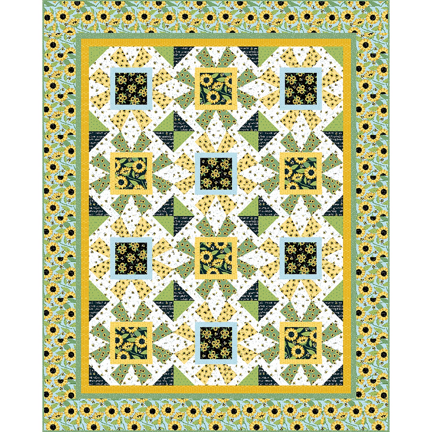 Create a beautiful daisies quilt with Picking Daisies by Heidi Pridemore of The Whimsical Workshop. Fabric shown in the sample quilt is "Sunny Honey" fabric line from Andover Fabrics.