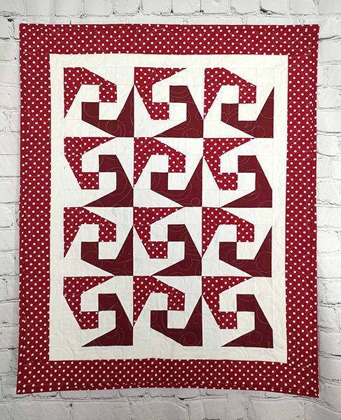 When making this quilt I thought they looked like frogs and then using the red fabrics, it made me think of the plagues in Egypt in the book of Exodus in the Bible. The block is a simple Fan Trick block but with clever color placement and the rotation of the blocks, a fun secondary design appears!