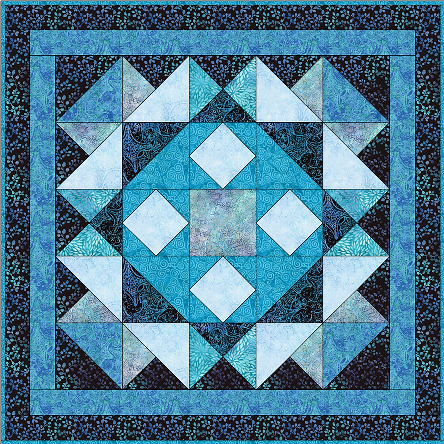 This is a quick and simple pattern. Use it for a table topper, lap quilt or throw it on the back of the sofa. The sample quilt features fabrics from Tonga Neptune by Timeless Treasures.Finished Size: 52" x 52"