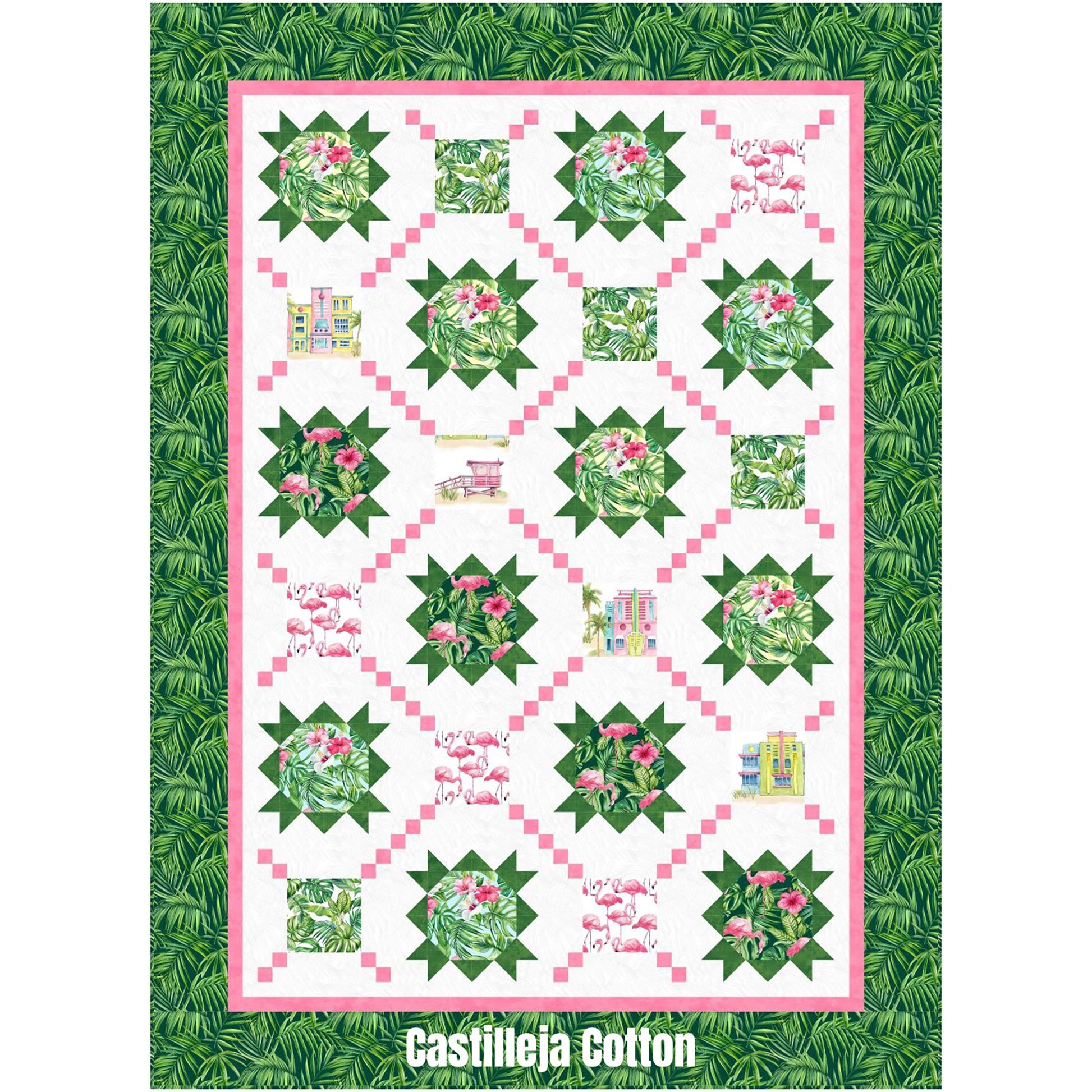 Fabric shown in the sample quilt is Northcott Fabrics Coastal Breeze. Colors: green, white, pink