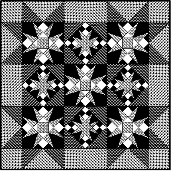 Mystery patterns require basic rotary cutting and machine piecing skills. Techniques are diverse, interesting, simple, and precise. While some techniques are more advanced than others, no pattern contains curved seams, Y-seams, applique or similar challenges. The sizes of quilts and number of fabrics used in the quilts are just as diverse as the techniques.