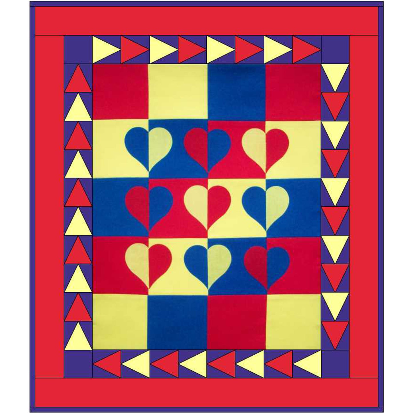 This is a simple quilt pattern to make. Use primary colors or your favorite ones. Templates included for heart and triangle in a square block.