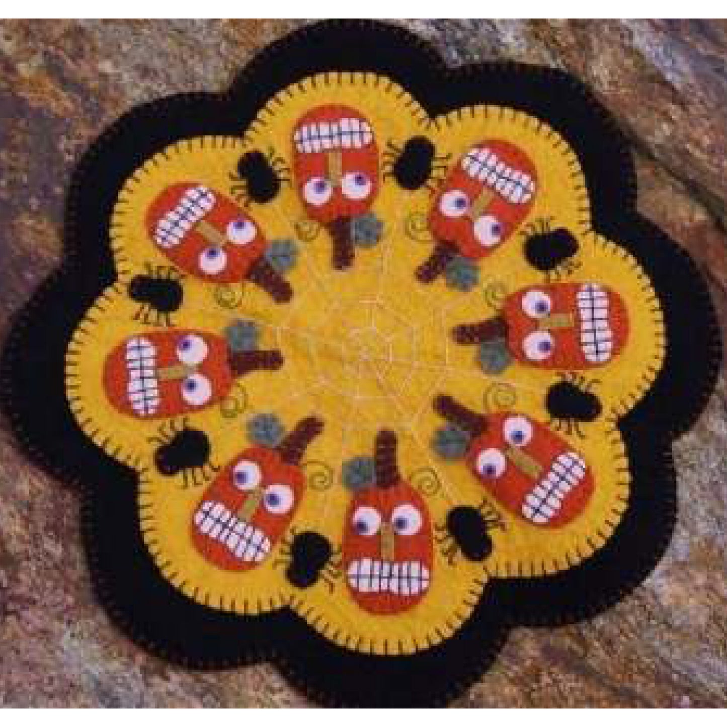 Pumpkins & Spiders Penny Rug Candle Mat PLP-104e - Downloadable Pattern