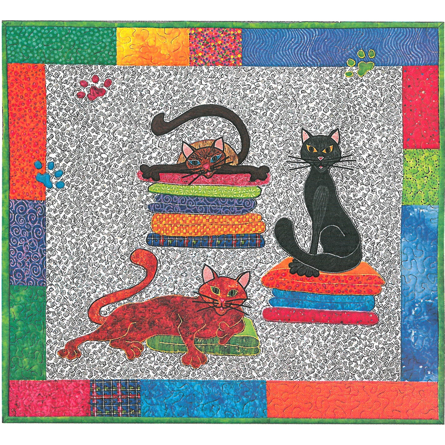 My Fabric! - the usual attitude of household cats in the sewing room. Make this 31" x 34" wall hanging or try each cat on its own panel.