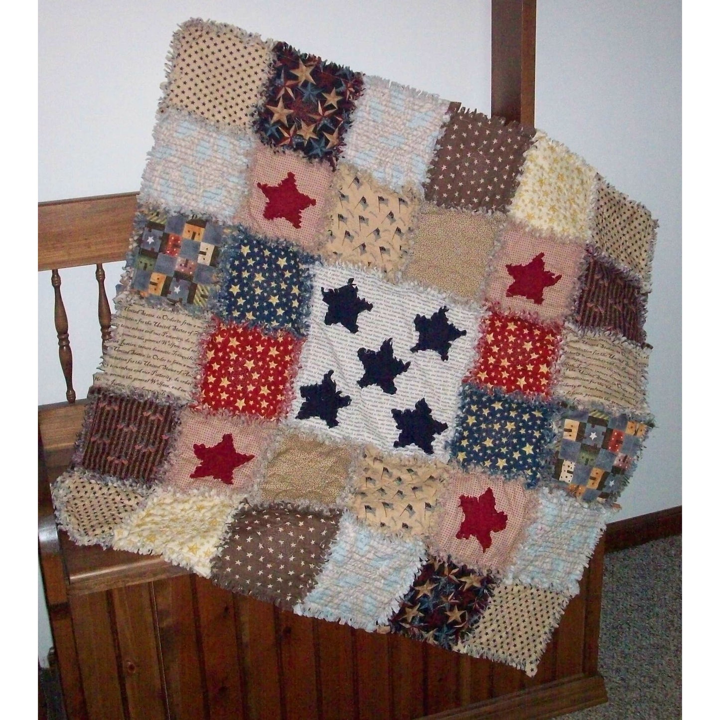 This is a fast, fun quilt using the Rag dies from accuquilt. It is a great way to use up some of your stash or create it with a theme in mind. I used all patriotic themed fabrics accented with red and blue stars.